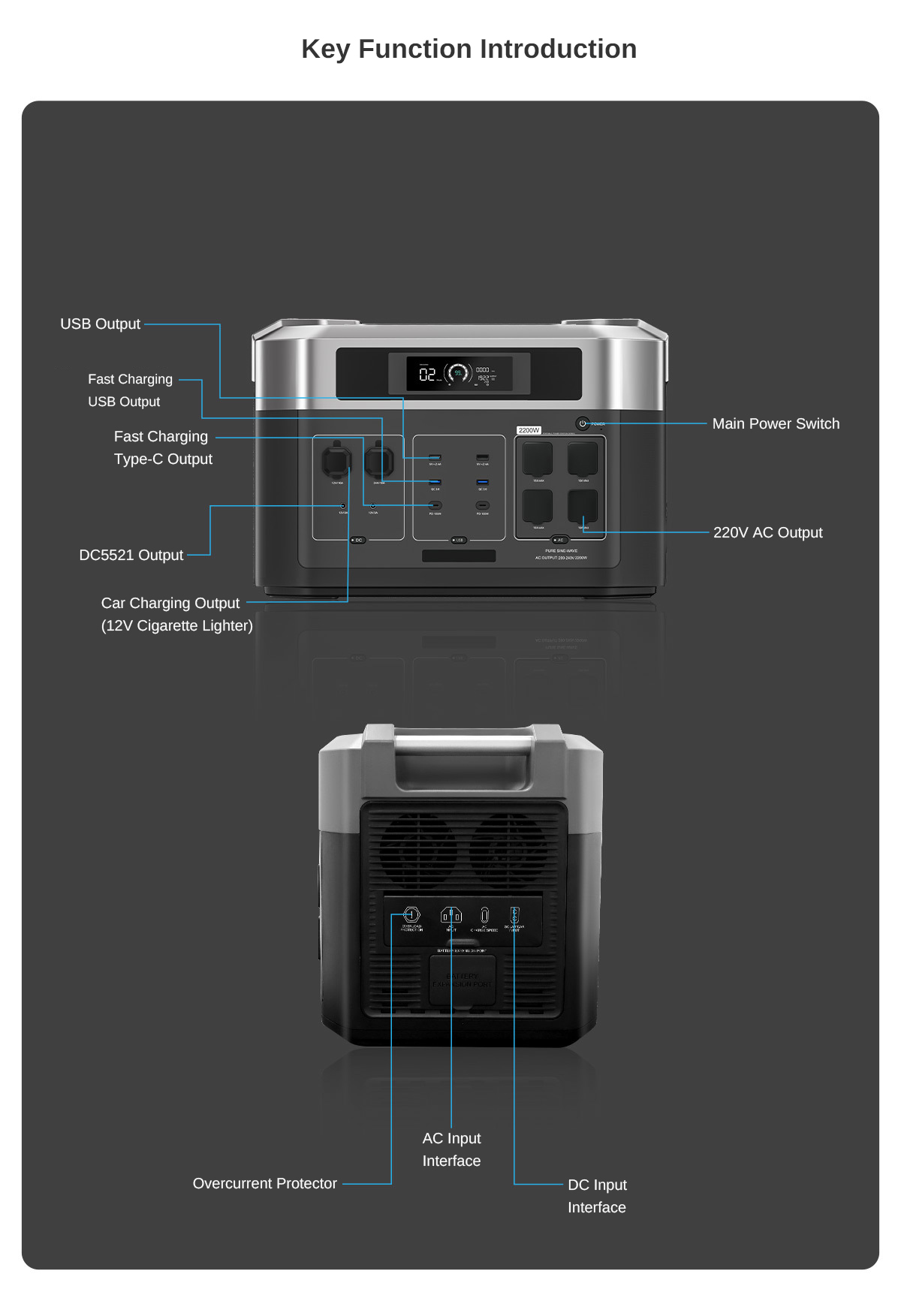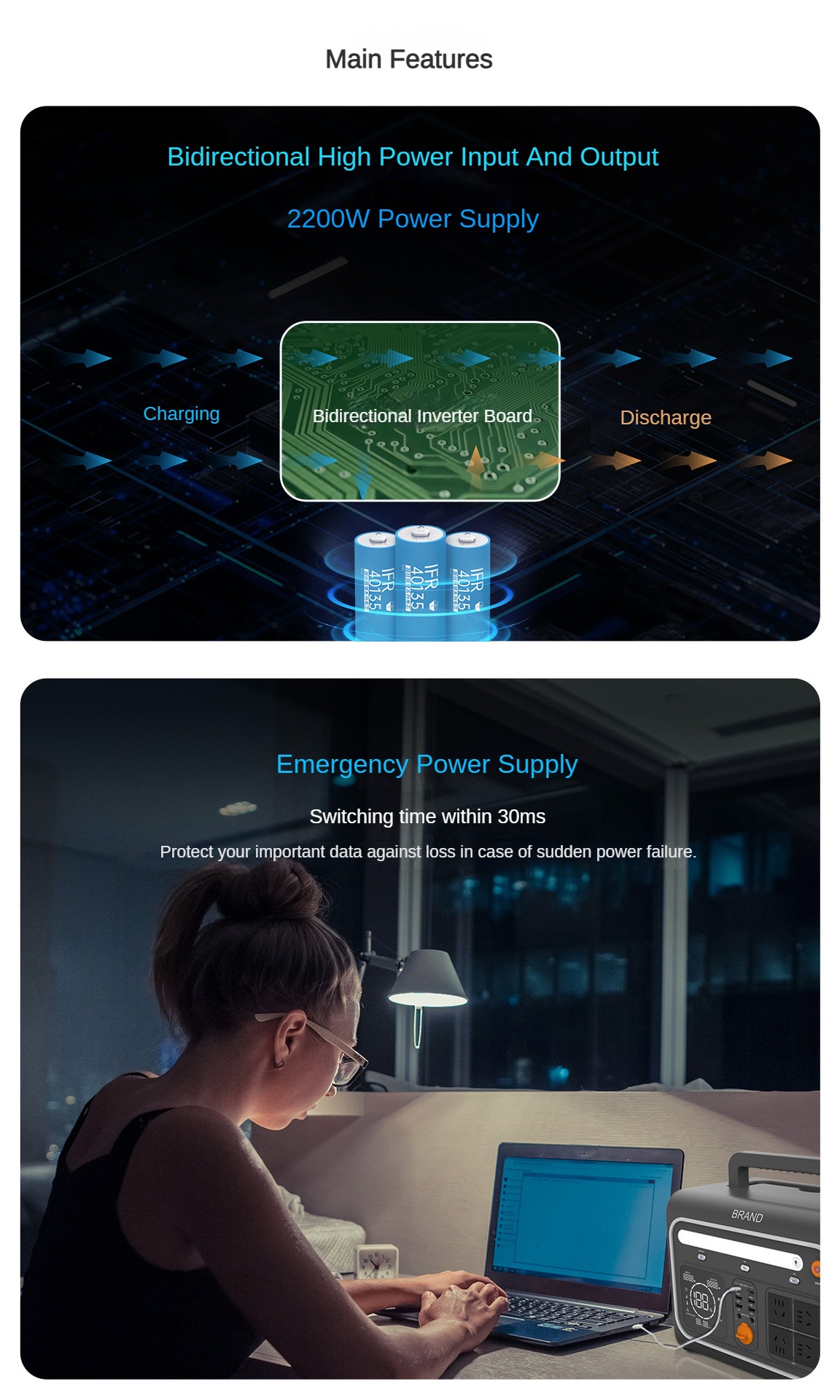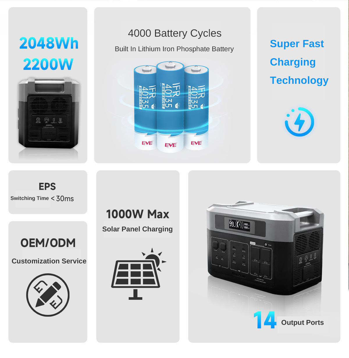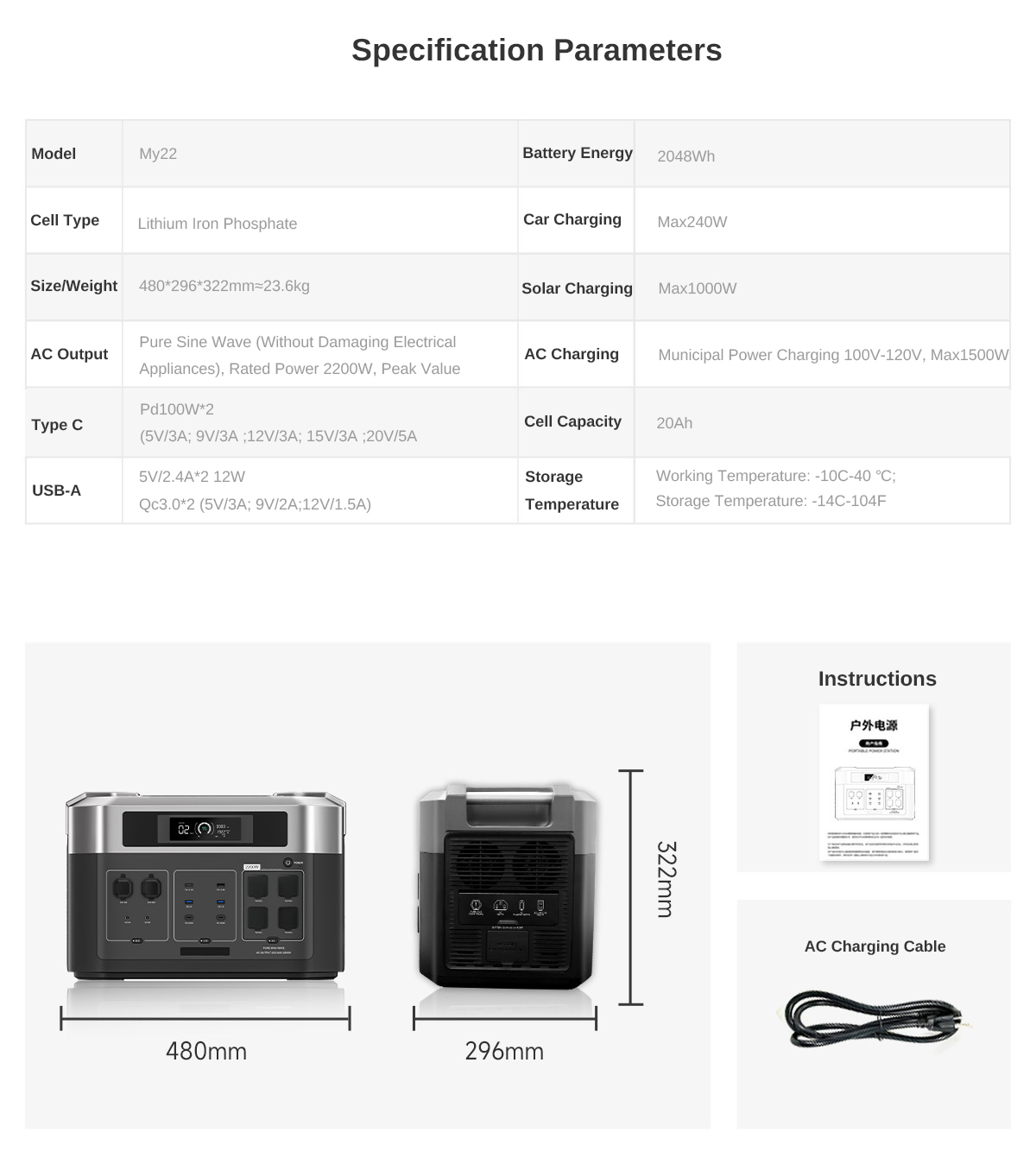 MY22 Outdoor Power Supply 2200W 2048Wh Mobile Power Supply Camping Large Capacity Energy Storage Power Supply
