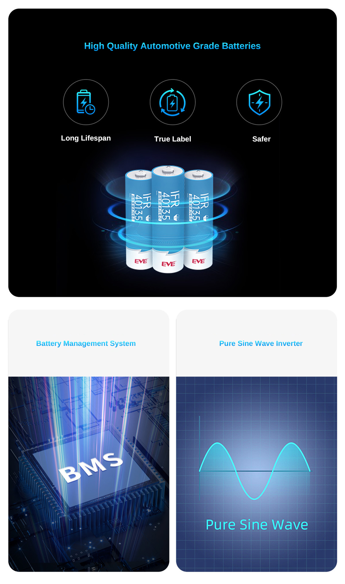 Ac Output: Pure Sine Wave (Without Damaging Electrical Appliances), Rated Power 2200W, Peak Value 4000W