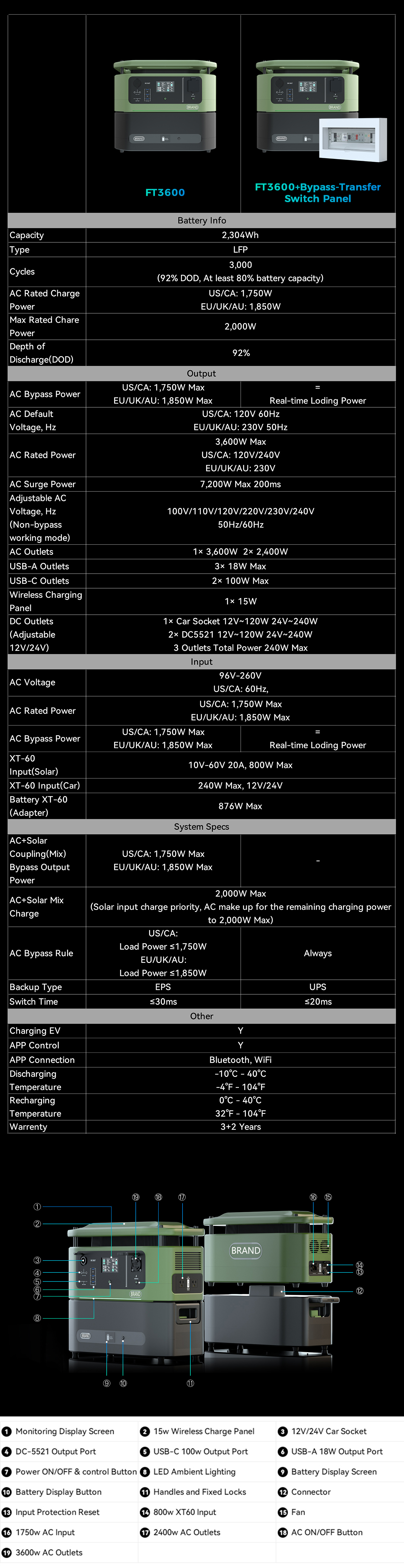 | AC Outlets | 2X 2400W, 1X 3600W |