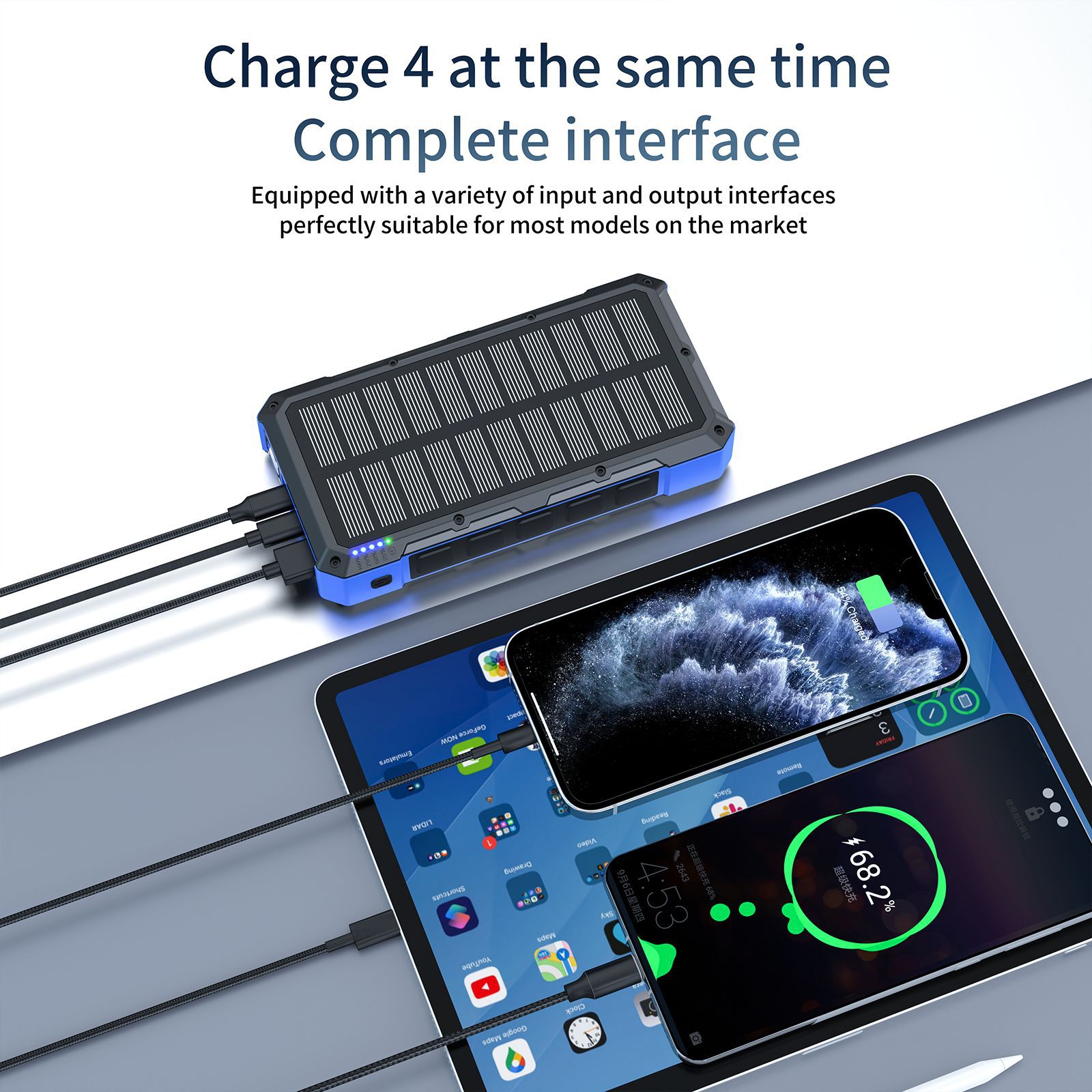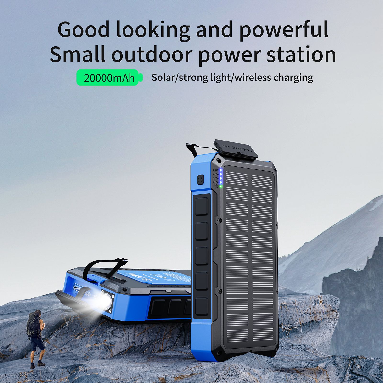 ZL602-Waterproof Solar Power Bank 20000 mAh Outdoor with LED Light Mobile Power Customization