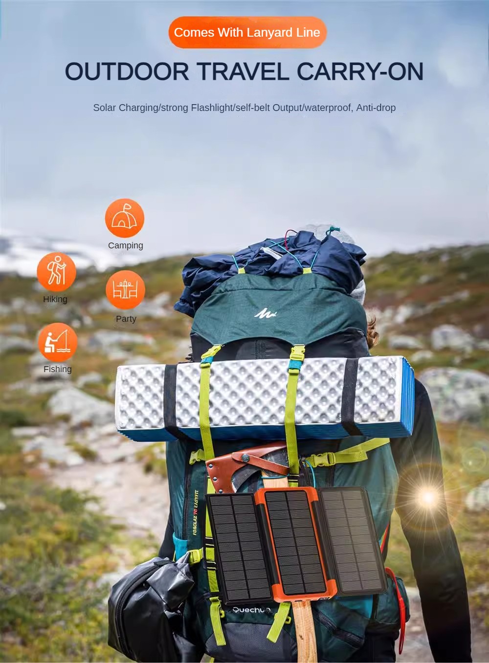 E449-HY-201-20000mAh large capacity mobile power bank outdoor folding solar panel wireless power bank