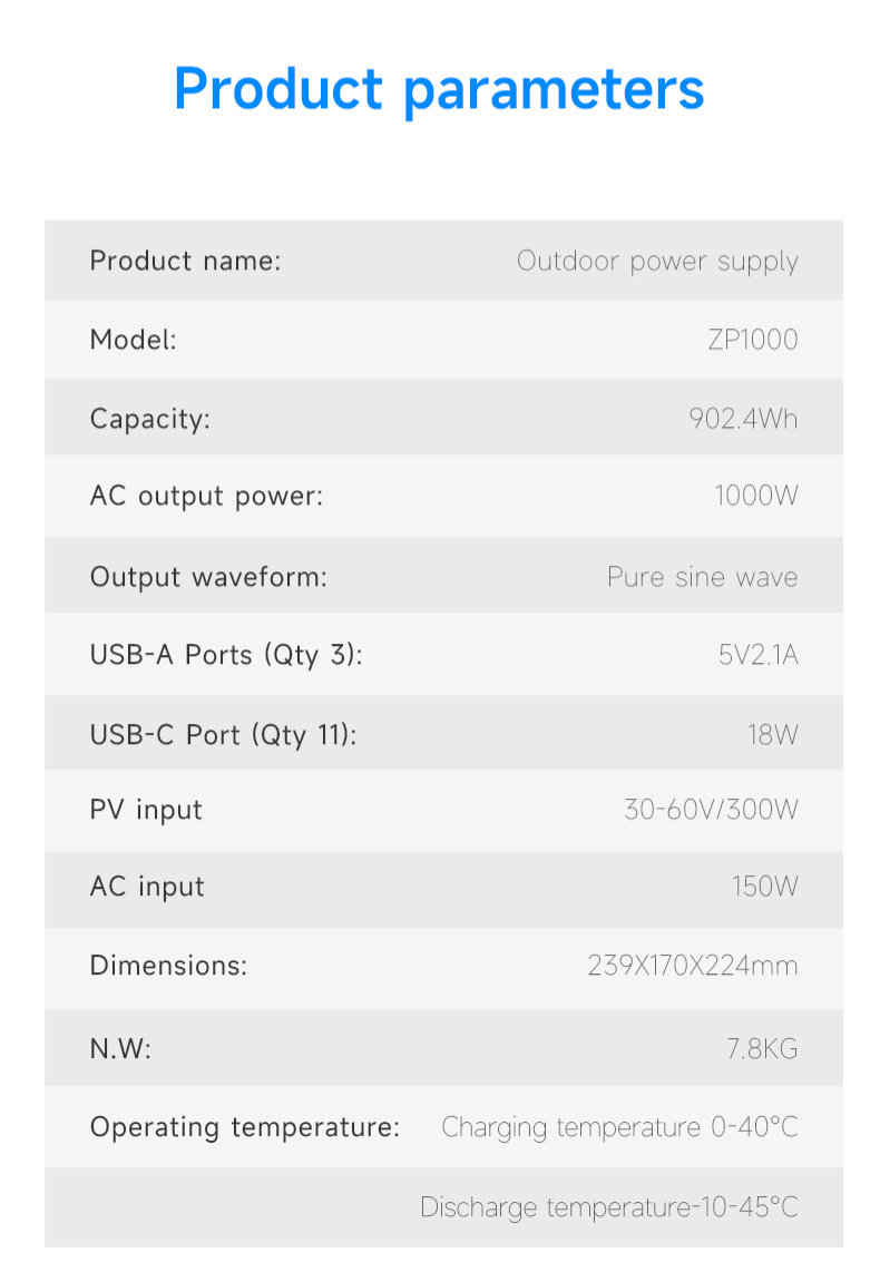 E4-ZP1000-External power supply high power compact portable large capacity energy storage power supply 1000W 902Wh