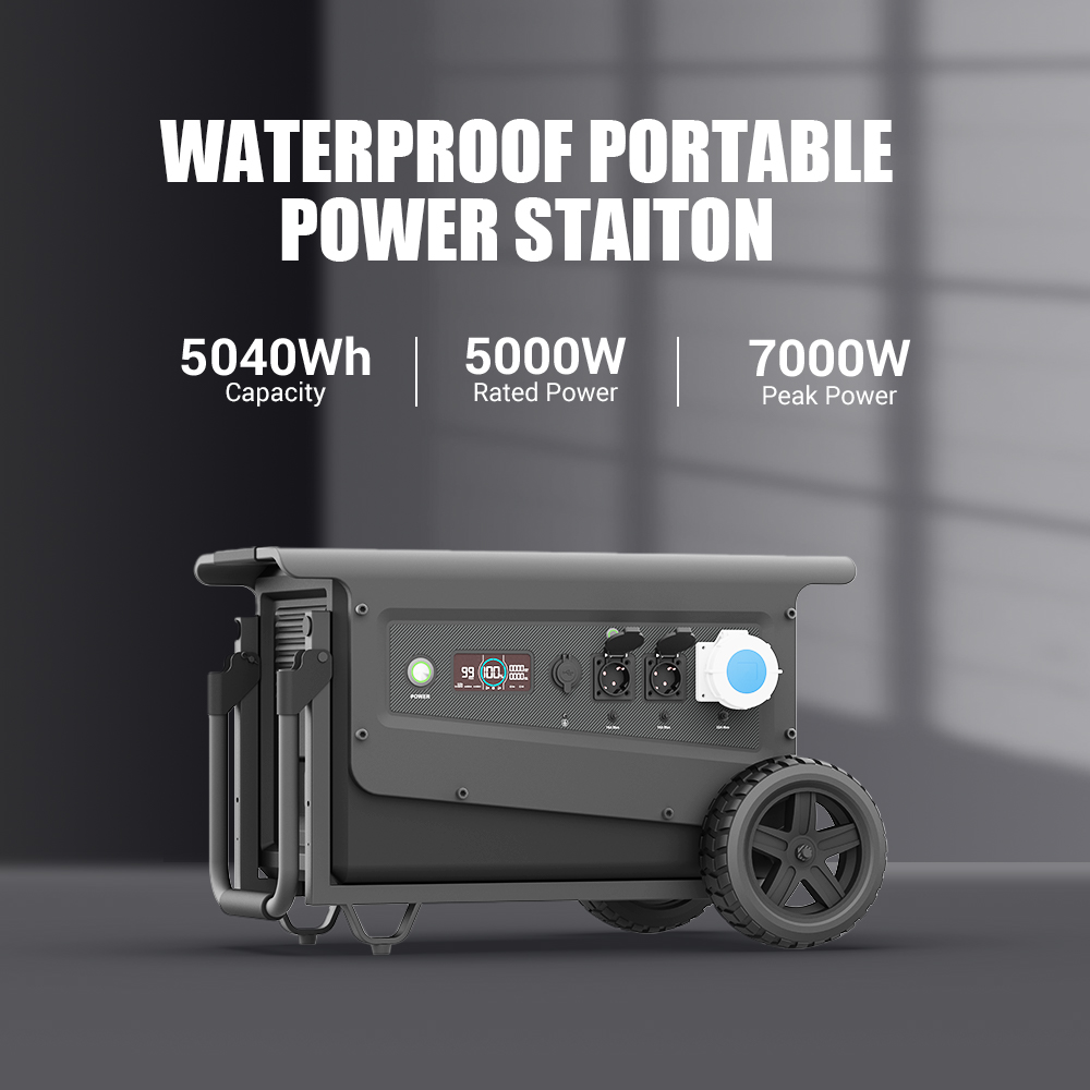 E463-W5 4000W 5040Wh Waterproof Solar Generator 5KW Lithium Battery Industrial Extension Portable Power Station With UPS Function